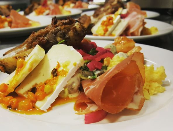 En tallerken med et raust utvalg av kjøkkenets fristelser. Spør oss om forslag, vi lager etter tilgang og anledning