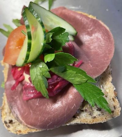 Rustikke smørbrød med roastbiff, løk & remulade