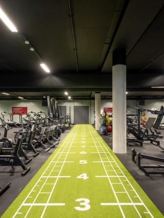 En styrkesal i toppetasjen, full av førsteklasses Technogym-utstyr
